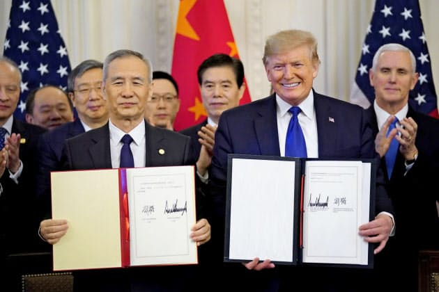 【ワシントン=鳳山太成】トランプ米政権は25日、中国が貿易協議を巡る「第1段階の合意」を実行に移しているとの声明を発表した。農産品に対する報復関税を引き下げるなどの措置をとっていると強調した。新型コロナウイルスの感染拡大で合意の実施が遅れるとの見方が広がるなか、支持基盤の農家に成果をアピールして懸念を和らげる狙いがあるとみられる。