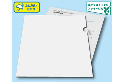 同製品は、水をはじく撥水紙を使用。水分によってホルダー本体や収納した書類が破れたり歪んだりしてしまうという紙の弱点を補い、書類を保護する。サイズは310×220mm(縦×横)、重量は約17g。