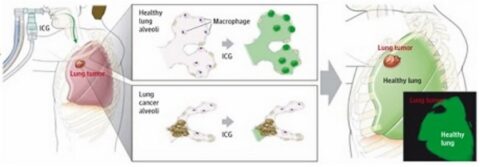 조영제가 폐 조직으로 흡입될 경우, 폐암세포에 도달하는 것이 아니라 정상세포들만 염색한다. 이 같은 형질을 이용하면 녹색을 띠는 정상 세포와 어두운 암세포 간의 경계면을 뚜렷이 확인할 수 있다.