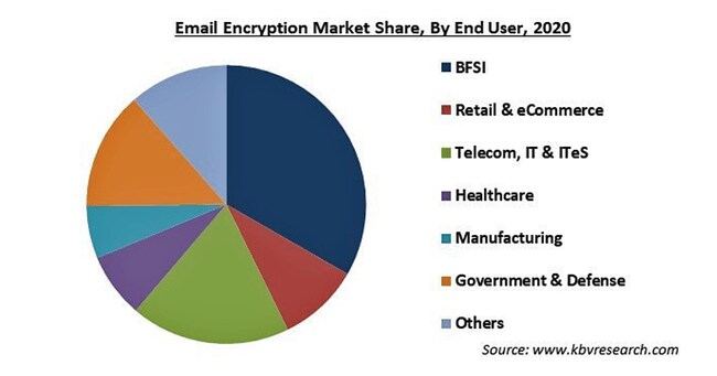市場は、エンドユーザー別に、BFSI、小売・eコマース、テレコム、IT・ITeS、ヘルスケア、製造、政府・防衛、その他に分類されます。今後は、BFSIセグメントが最大シェアを獲得すると予測されます。BFSIは、機密性の高い金融データを大量に保有しているため、最も脆弱な産業分野です。この産業の関連企業は、不可逆的な暗号化を確保するために、電子メール暗号化ソリューションの必要性を感じています。