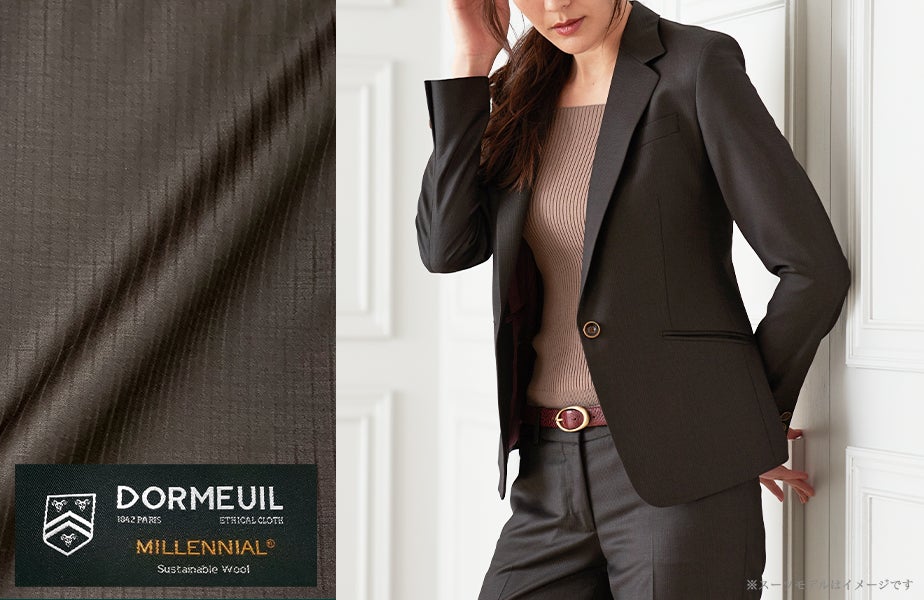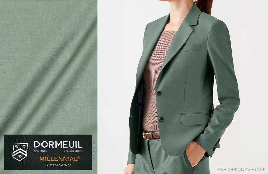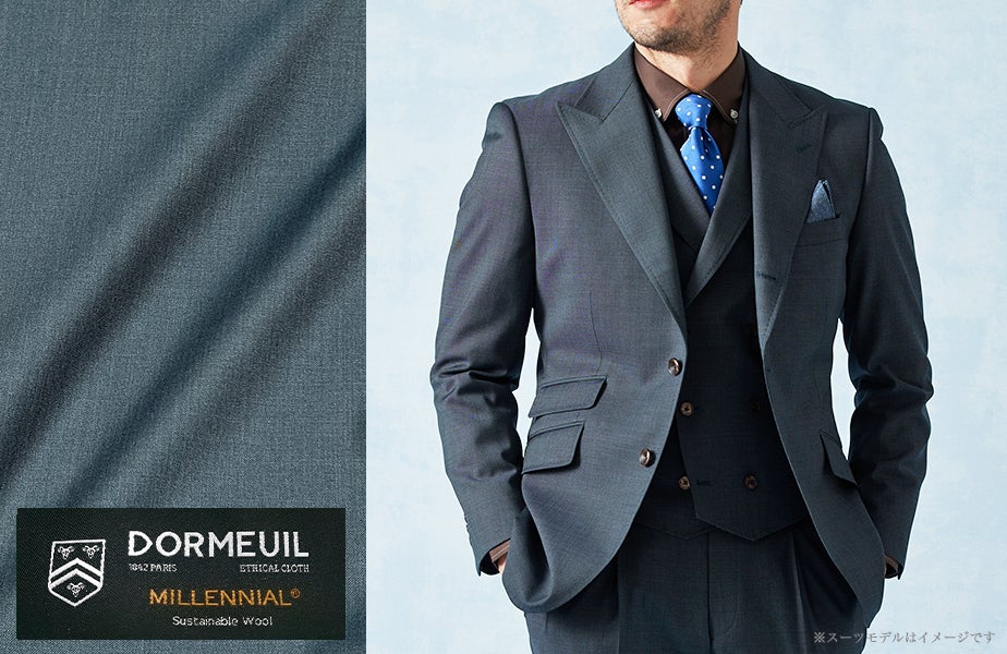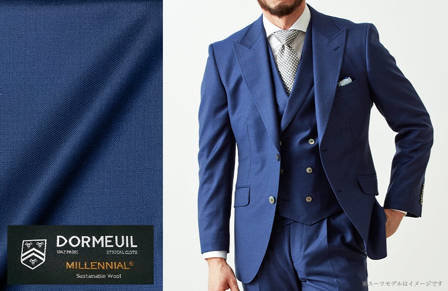「DORMEUIL MILLENNIAL」 では、ビジネスシーンで活躍するネイビーをはじめ、ブラウン・グリーンなどお洒落なカラーを種類豊富に入荷いたしました。